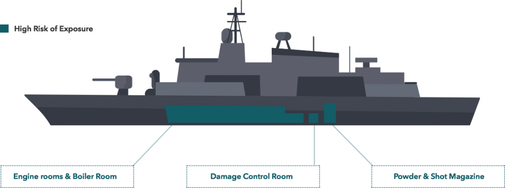 Much of it has been removed, but many old naval ships still have asbestos. These materials only pose a risk to current service members if they become damaged or exposed without the use of proper safety gear.